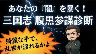 三国志の参謀タイプを【腹黒診断】で判定!法正・程昱・張昭など、軍師とは違う「能吏タイプ」の処世術とは?あなたの性格に潜む毒と、乱世を生き抜く武器を分析。トレンドの程昱タイプは要注意?
