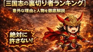 三国志のランキング【三国志の裏切り者ランキング】意外な理由と人物を徹底解説 三国志裏切り者ランキング!まさかの人物がランクイン!?忠義のイメージを覆す武将たちの決断とは?呂布、関羽、そしてあの司馬懿まで…意外な裏切りエピソードをランキング形式で徹底解説! 2025.04.06三国志のランキング